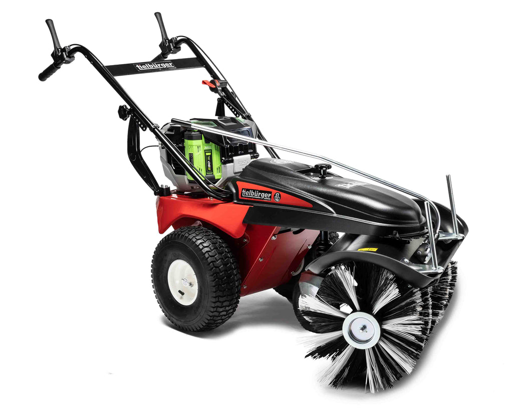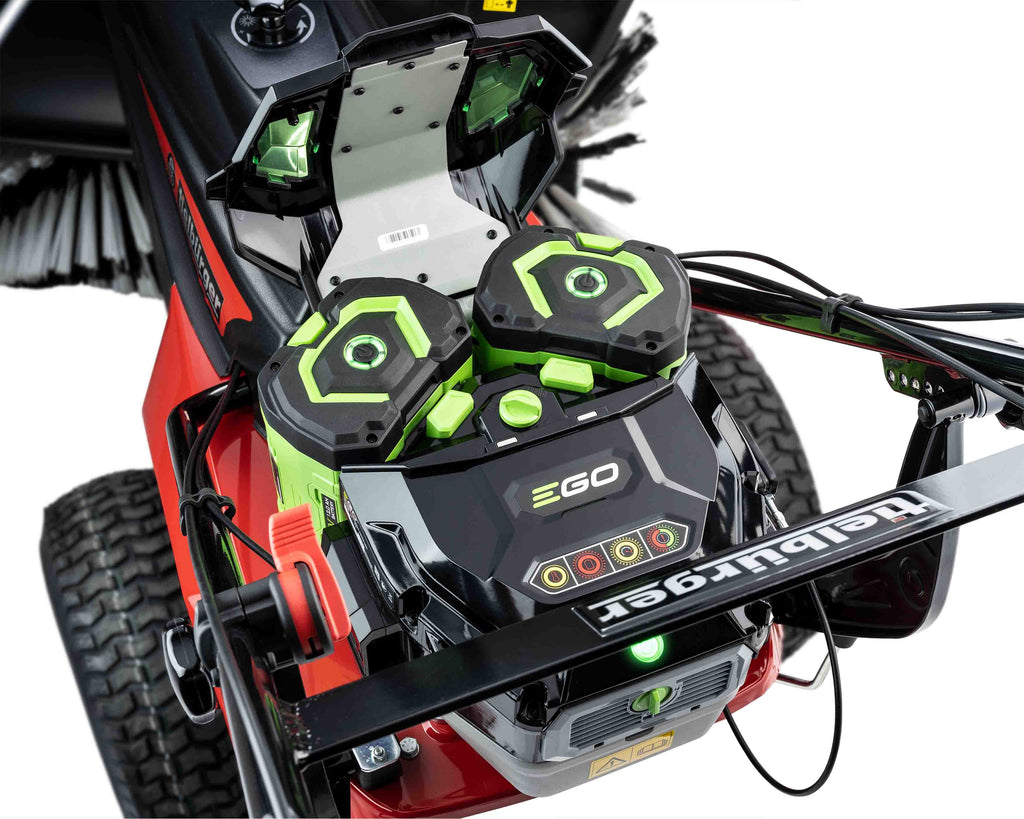 • Intelligent battery system: The mower is equipped with one or two 12 Ah professional hand batteries, which deliver enormous energy of up to 1,344 watt hours. An additional 28 Ah backpack battery can be connected for maximum range.